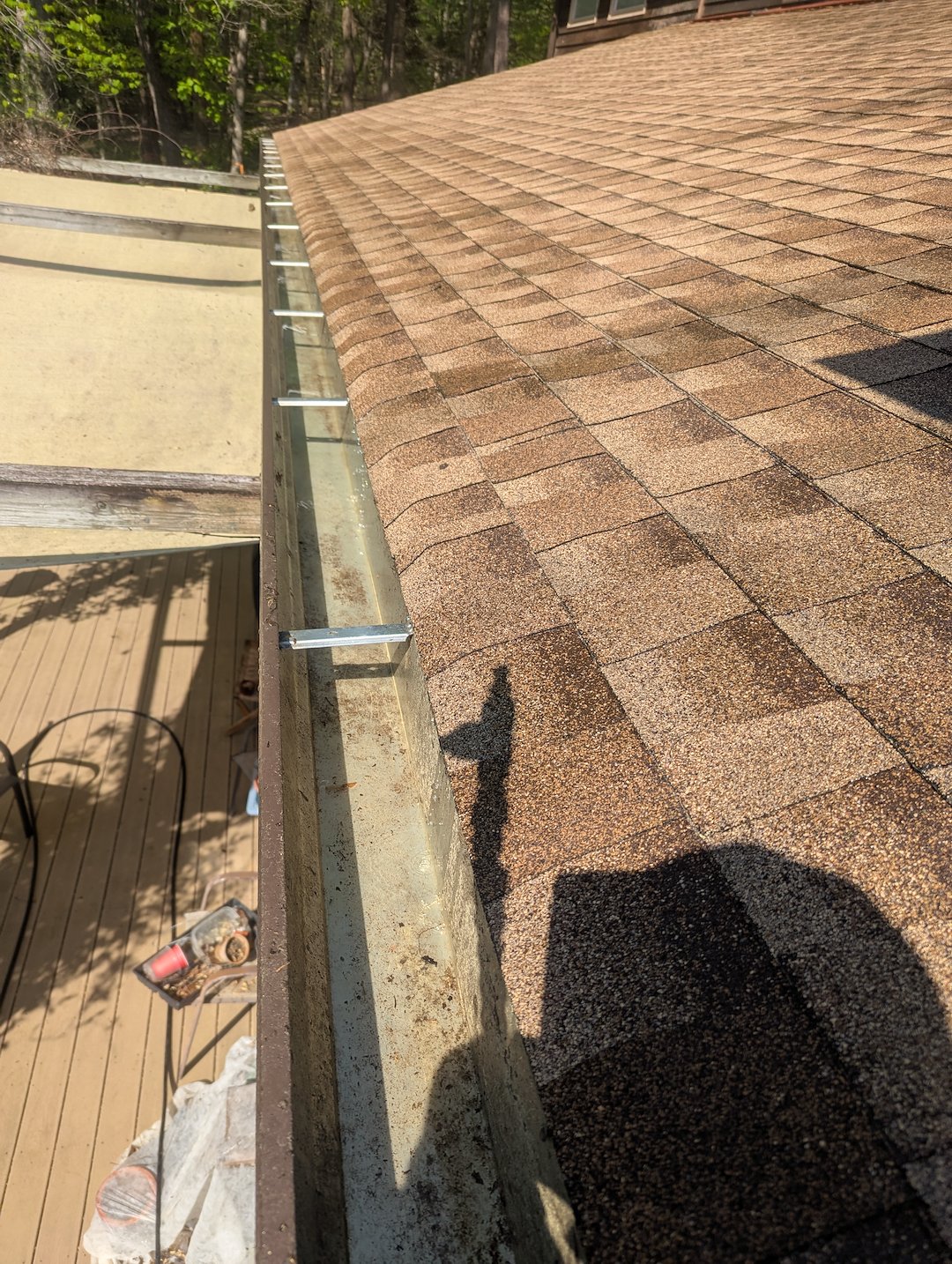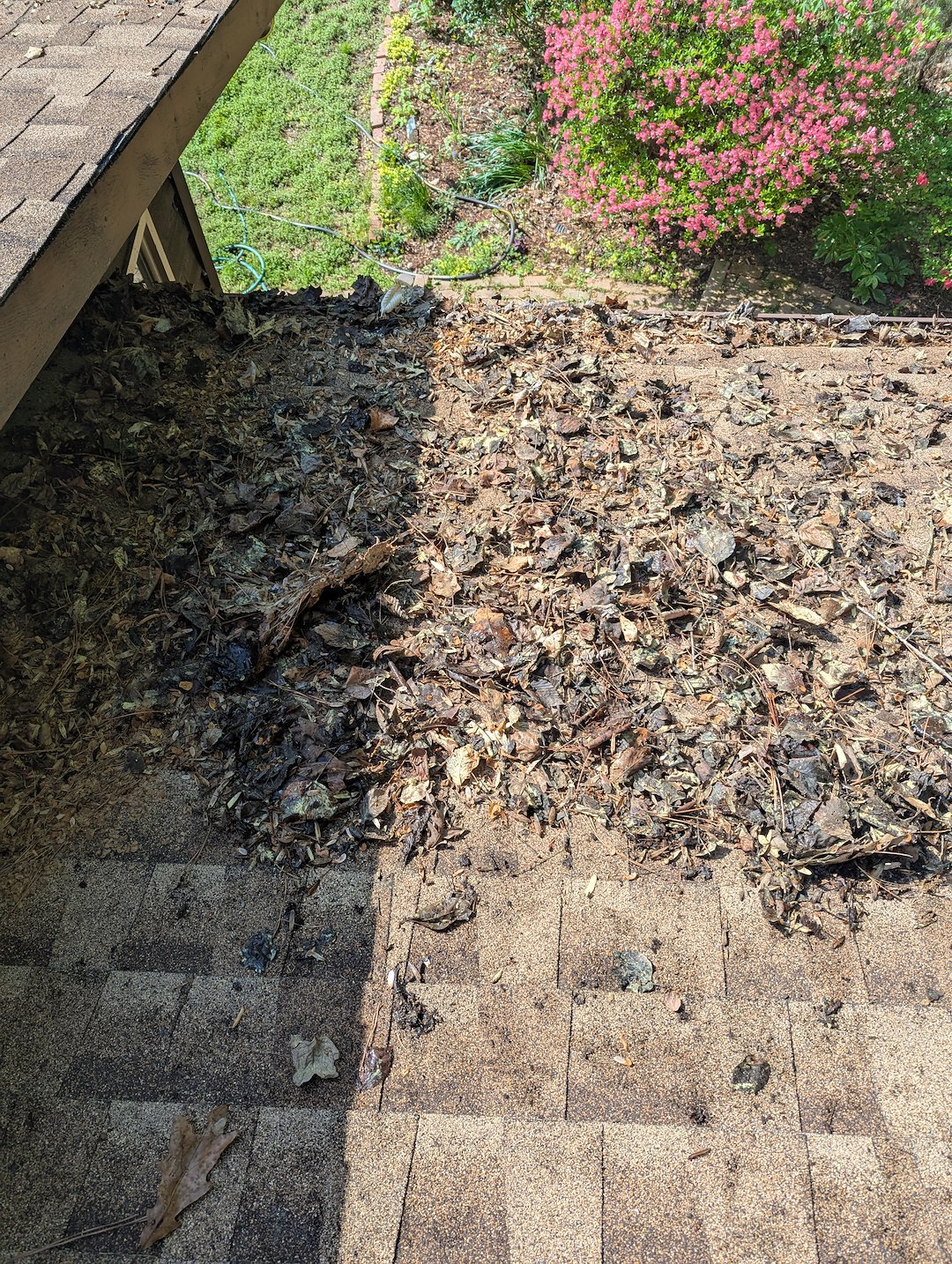 This beautiful Chapel Hill homeowner sits in a wooded area. The homeowner reached out to us for a roof blow off, gutter cleaning, and exterior window cleaning. The biggest challenge of this opportunity was keeping focused with all of the beautiful landscaping surrounding the property. So much debris was removed from the roof, eliminating areas for moisture to remain and so many pounds of debris removed from the gutter. Roof and gutter maintenance is often 'out of sight, out of mind's but is a very important part of overall home maintenance.