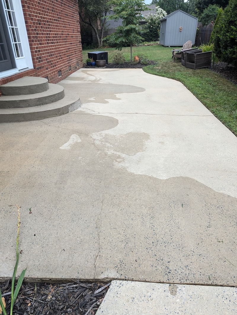 This Elon, NC homeowner opted for a driveway washing along with back patio concrete, sidewalks, and all exterior windows. Concrete can be a long lasting feature of a home if properly care for. Many treat concrete as maintenance free but that's far from accurate. This porous substrate can be the perfect breeding ground for mold, mildew, algae, lichen, etc. This growth can dramatically decrease the life of the concrete. Pre-treatment and using moderate pressure to surface clean can keep your concrete clean, bright, and strong for many years to come!