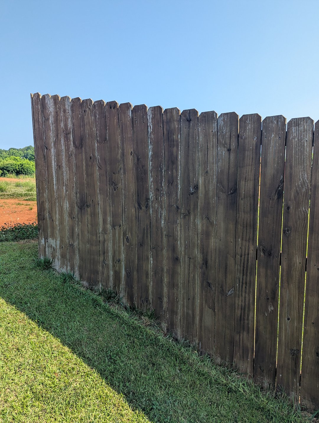 This Mebane homeowner contacted us for a fence cleaning. Wood cleaning is definitely not a 'one size fits all' approach. We begin with the question, "what are your plans for the fence?". In this case, the homeowner is going to be painting this fence very soon. The goal was to remove the organic growth and perhaps some of the previous stain but removal of all stain isn't necessary as a solid paint color will be applied. For this reason, we used a sodium metasilicate cleaner and moderate pressure to prepare the surface without damaging wood fibers. After thorough rinsing and a few dry days, this wood will be perfectly ready to receive a fresh coat of paint!