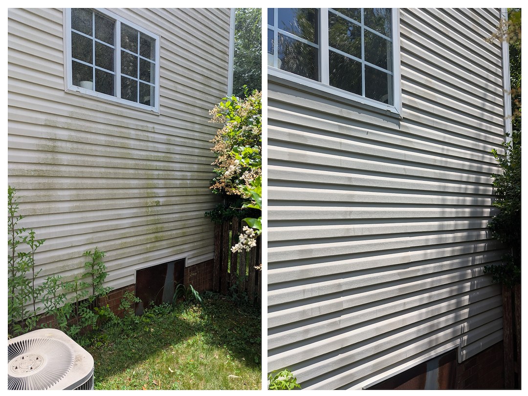 While cleaning a neighboring property, this Mebane homeowner took note of our truck and reached out using the contact info posted. We hold these requests in high regard and take them as a huge compliment as no one is going to give you a call after you clean their neighbors property unless they believe you did a great job. We were able to make it back out to complete a house washing and driveway cleaning for this homeowner using a softwash process to remove all organic growth and pollen/dirt/dust, leaving the curb appeal restored and the home looking fresh again! We look forward to the next neighbor that takes notice!