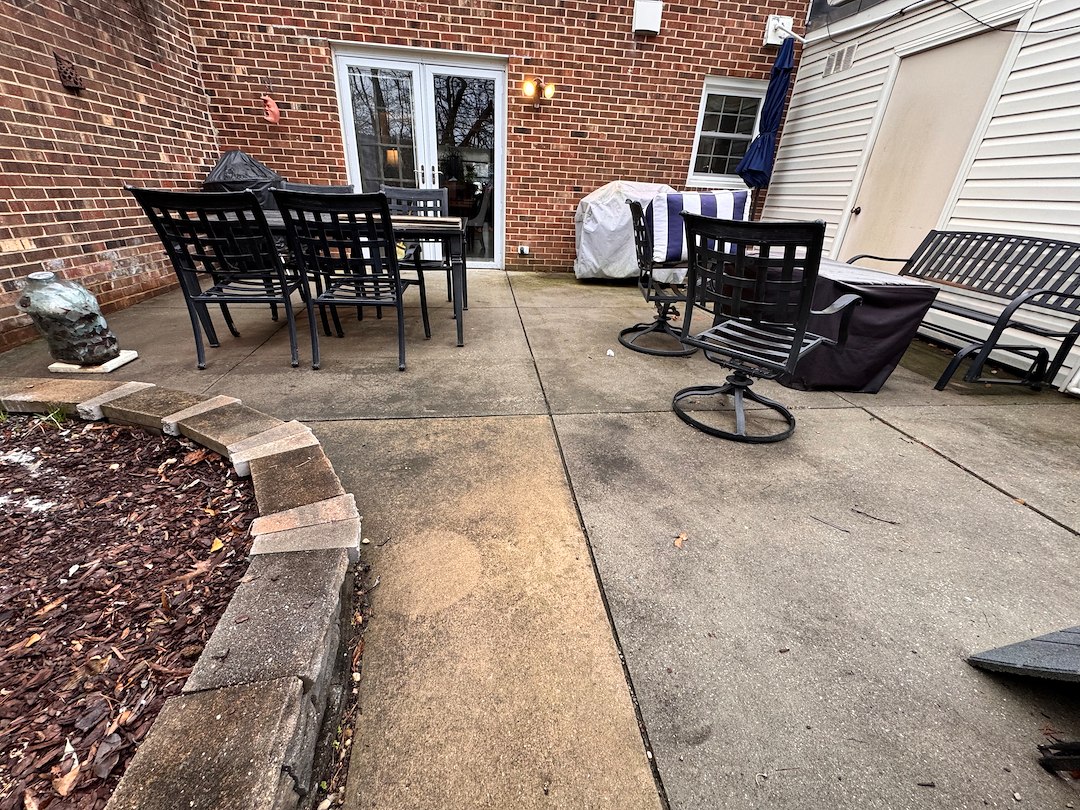 As the weather begins to warm and we all start making our way out and examining our outdoor areas that will soon host good times, you may find yours in the same condition as this Greensboro homeowner. Concrete and pavers are a prime breeding ground for algae and other organic growth, especially in shaded areas. If it's time for your patio cleaning to get the area looking fresh and clean and eliminate those slippery when wet spots, give us a call and allow us the opportunity to deliver on our promises of extreme clean and exceptional service.