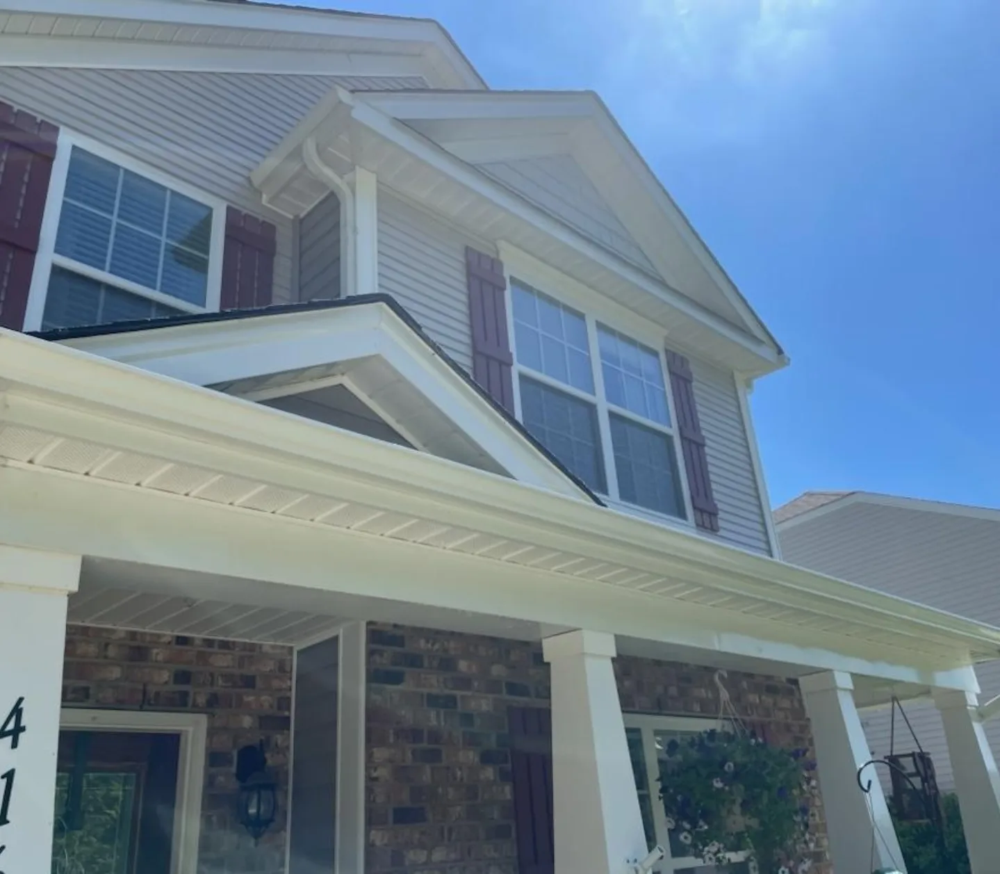 This homeowner in Haw River desperately needed the gutters cleaned out to correct drainage issues. Not only were we able to clean out all debris and flush the downspouts but the homeowner also decided to take advantage of our gutter brightening service. When we say we get your gutters bright, we mean 'throw on some sunglasses when you ride by this home' bright!