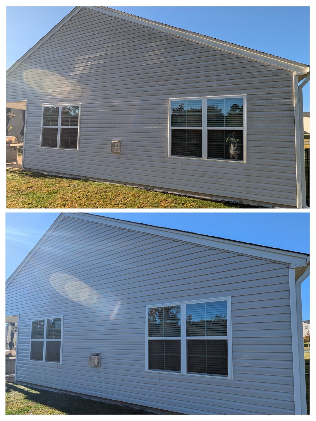 We were in Graham on this beautiful morning to get this home looking like new for this homeowner who requested a house softwash to get rid of the spreading algae and mildew. A thorough house washing now has this home looking bright and fresh and ready for those Holiday decorations. We are available any time of year. Give us a call or text or request a free quote straight from our website for all of your exterior cleaning needs!