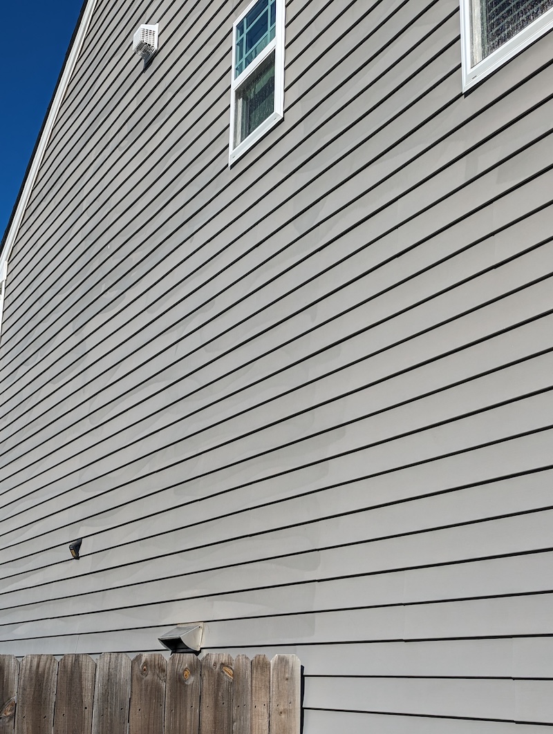 Today's house washing in Haw River, NC included oxidation removal. This homeowner gave us a call stating that someone else had pressure washed their home and "now it doesn't look right". As you can see in the photos there are many wand marks and swirls on the siding. This is the result of oxidized siding that was cleaned using incorrect chemical mixture, technique, and pressure. After performing oxidation removal, these homeowners are extremely happy with the result! Unfortunately,, oxidation removal is more costly than a house wash, so contact us and let us properly clean your home today.