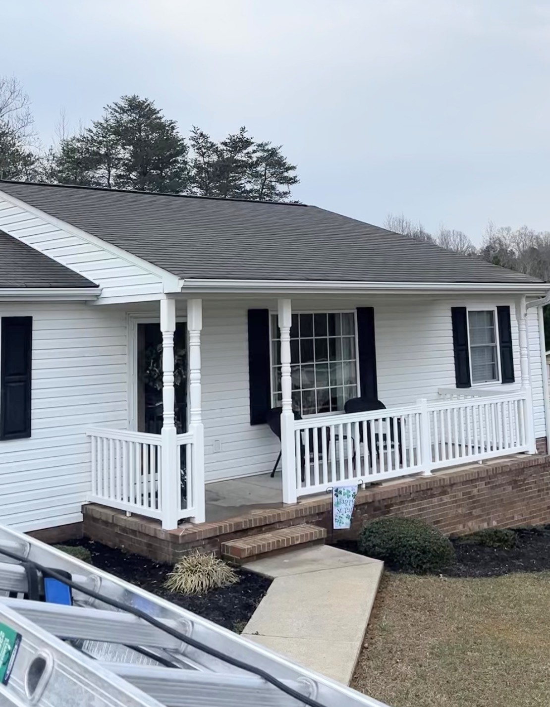 This Graham NC home looked like new after a vinyl siding wash, roof cleaning, and sidewalk/porch pressure washing! Stained roof streaks no more! A proper softwash technique along with a mixture of surfactant and sodium hypochlorite instantly had a dramatic impact on curb appeal. We offer package discounts for multiple services and would love the opportunity to care for your entire home also!